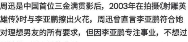 要知谈昔日周迅仍是28岁了,是见过大世面的影后了,然而她对李亚鹏的评价却如斯之高,为什么?