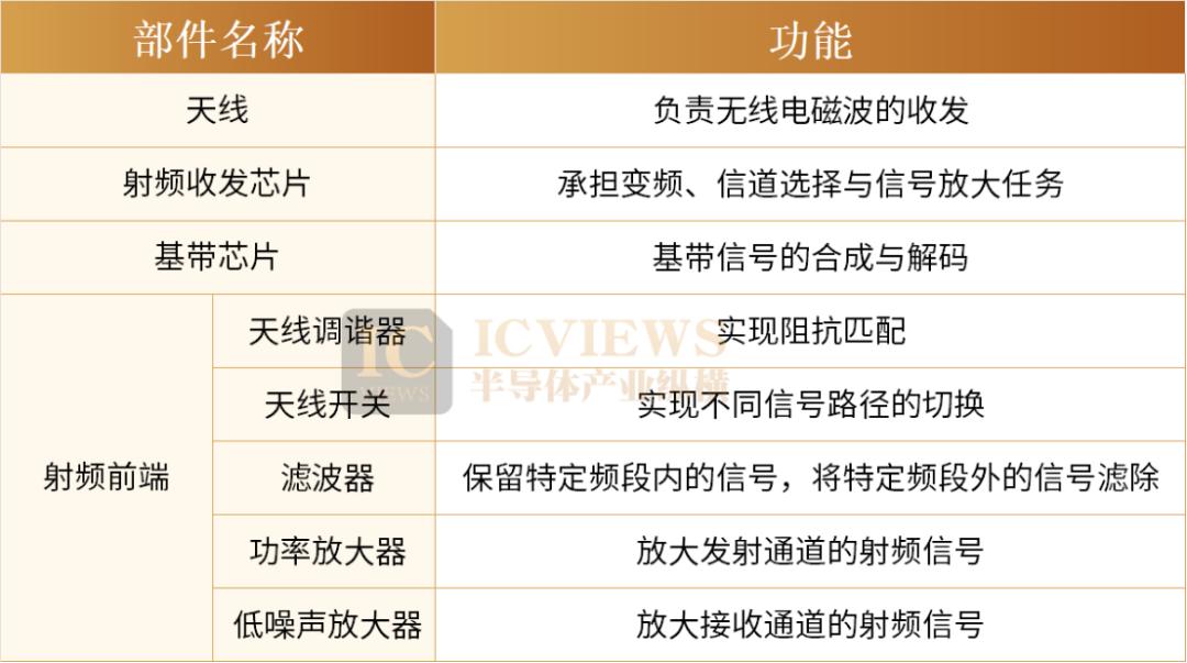看成关节部分的射频前端又包含多个子模块,射频前端雷同由功率放大器(PA)、低噪声放大器(LNA)、滤波器(Filter)/双工器(Duplexer)、射频开关(Switch)、和天线调谐器(Tuner)等器件组成。
