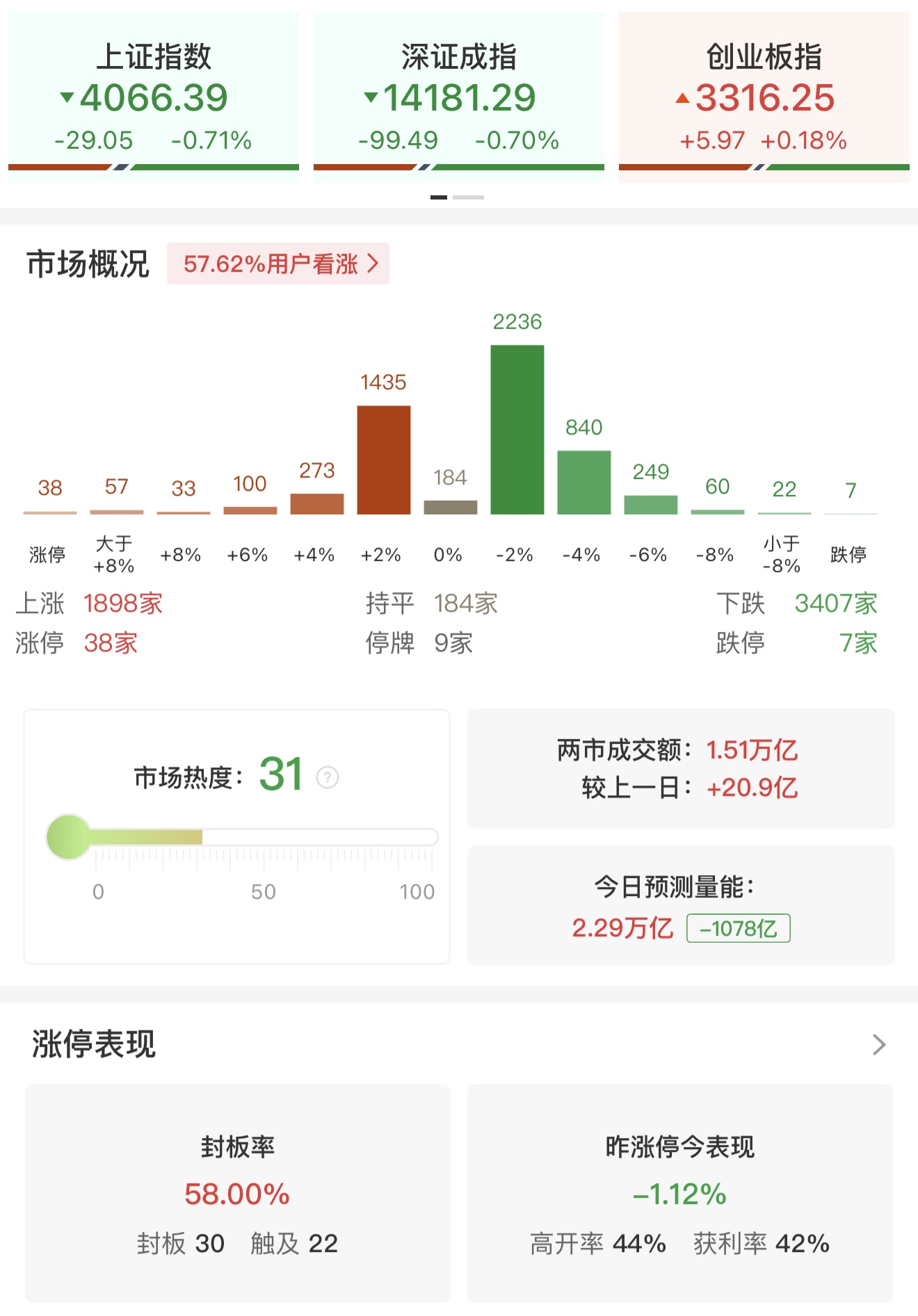 财联社3月16日电,三大指数涨跌不一,沪指、深成指早盘震憾退换,盘中均跌超1%。沪深两市半日成交额1.51万亿,较上个交游日放量20亿。盘面上热门劣势轮动,全市集超3400只个股下落。从板块来看,深海科技成见逆势走强,东方海洋、神开股份、海洋王涨停。存储芯片成见反回生跃,佰维存储涨超8%续创历史新高,朗科科技20CM涨停。PCB成见合手续拉升,金安国纪涨停,中英科技、瑞丰高材均涨超10%。算力租出成见发达活跃开yun体育网,二六三反包涨停。化工板块冲高回落,金清廉炸板回落,赤天化反复开板,鲁欧化工波及跌停。有色金属板块集体走弱,山金海外、华锡有色等多股大跌。完毕收盘,沪指跌0.71%,深成指跌0.7%,创业板指涨0.18%。